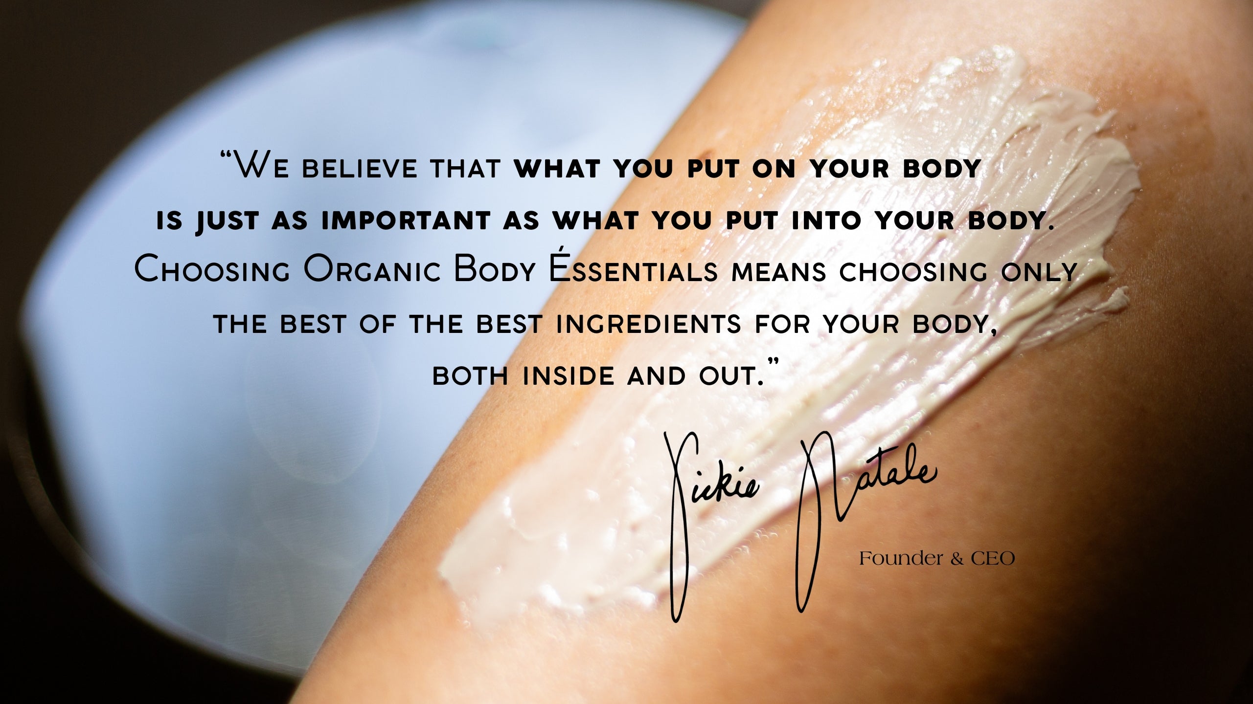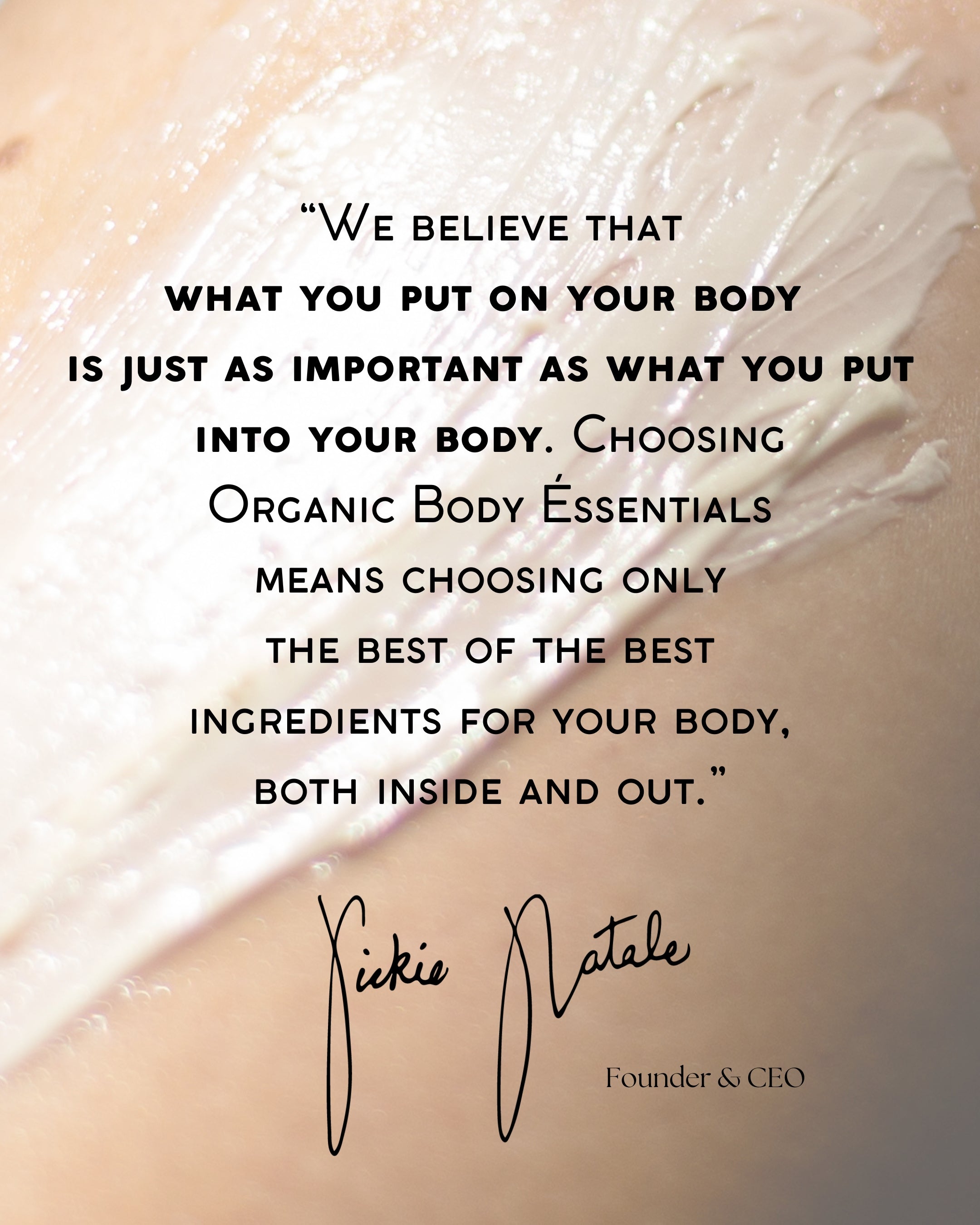 Organic Body Éssentials was founded by Vickie Natale in 2014 when she discovered a serious need for truly organic skin and body care products. She combined her passion for holistic nutrition and her expertise as an engineer, product developer, and manufacturer to develop the first Certified Organic whole-body care product line. Even today, we are proud to be at the forefront of changing how people think about what they are putting on, and in, their bodies.